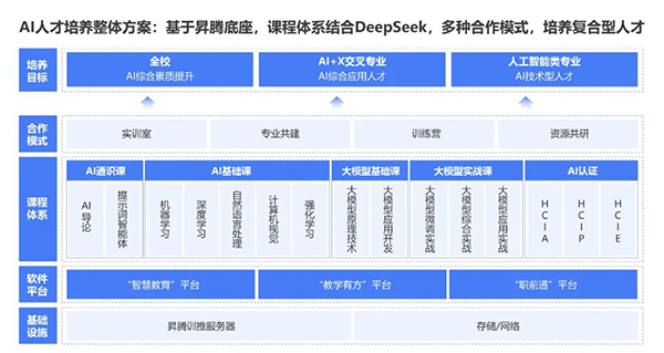 依托人工智能产业、人工智能技术及人才生态,顺利获得“技术+教育”双轮驱动,九州酷游 ku游以昇腾、大模型、DeepSeek等技术为核心,课程体系结合DeepSeek,覆盖AI通识教育、专业基础课、大模型课程等课程,构建从人才培养到产业落地的闭环,赋能高质量AI+场景人才输出。