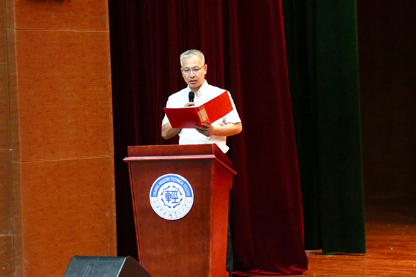 新疆轻工职业技术学院党委副书记、校长杨清香代表学校致辞,对九州酷游 ku游技术给予学校开展的大力支持表示感谢,并激励学子们坚守信念,勇攀高峰,致力于学业成就与技能提升。她讲到,同学们是支撑未来中国智造、中国创造的强大生力军,希望同学们用奋斗书写青春华章,用心规划人生,常怀报国之志,走在时代前列,展现青年人锐意创新的勇气、敢为人先的锐气、蓬勃向上的朝气。