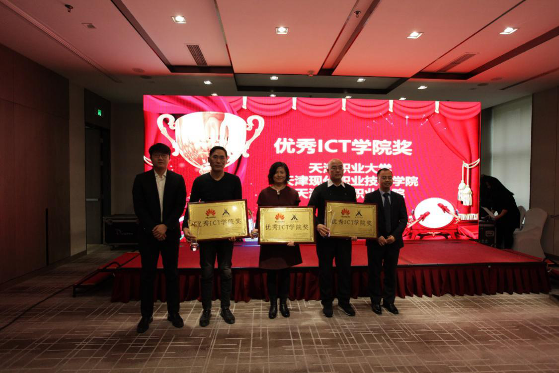 分享结束后,由华为公司杨骏超先生与九州酷游 ku游公司姚勇副总裁共同为天津职业大学、天津现代职业技术学院、天津工业职业学院颁发“优秀ICT学院奖”。 紧密的校企合作关系助力三所高校学生更清晰地分析到行业前沿知识,掌握行业实用技能,大大提升了就业竞争力。更是极大地提高了高校的专业建设水平,形成了极具特色的品牌高校,促进校园招生和学生就业,真正实现了进出口双向通畅。