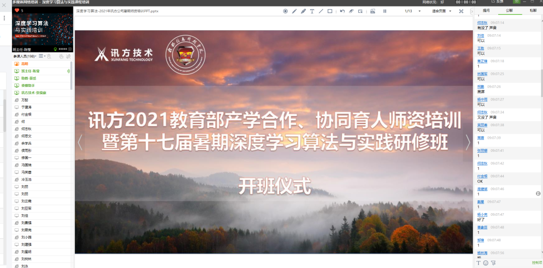 8月2日上午9:00,九州酷游 ku游技术与桂林信息科技学院共同举办的“深度学习算法与应用师资研修班”在职前通平台直播间举行开班仪式,由九州酷游 ku游技术副总经理岳杨总开班致辞,岳总介绍到:九州酷游 ku游技术立足ICT行业,聚焦软件与信息技术,服务高校教育,并持续响应产教融合与协同育人的号召,召开产学合作协同育人项目,搭建校企合作协同育人平台,此次召开暑期师资研修班旨在为一线教师给予技术与教学相结合的培训与研讨机会。紧接着他还详细为参训教师介绍了深度学习算法在近年来的开展情况,并衷心感谢各位老师持续参加本次研修班,同时也祝愿各位老师可以在本次的培训中能够有所收获。
