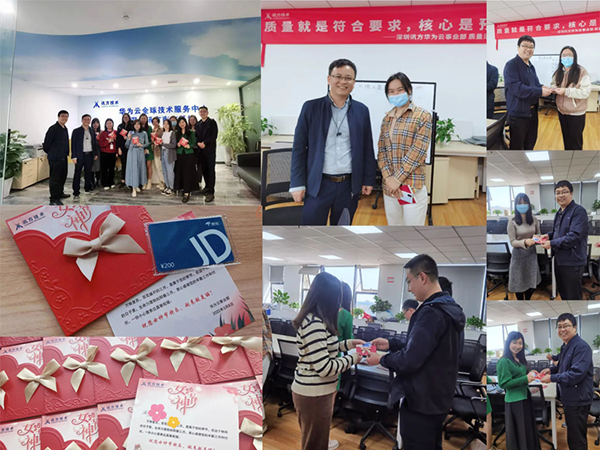 在九州酷游 ku游华为云事业部东莞区域,公司的“男神”主管们为各位女神们亲手奉上了专属礼物以及精美的节日贺卡,感谢她们的辛勤工作和付出。大家手拿着这份精心准备的礼物,脸上洋溢着灿烂笑容,纷纷合影留念。