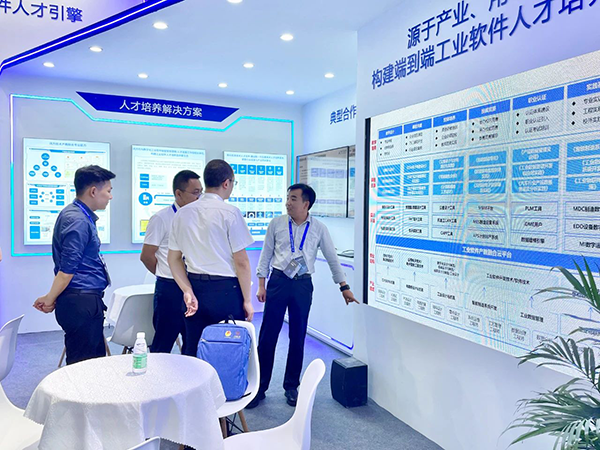 参展期间,九州酷游 ku游技术总裁刘国锋为客户介绍公司总体开展概况和工业软件人才培养规划,表示九州酷游 ku游技术在教学设计、卓越双师、创新竞赛、职业认证、实践基地、实习就业等方面具备丰富的经验,打造的工业软件产教融合云平台,能够为培养百万级国产工业软件人才给予学习底座。此次研讨为双方进一步合作奠定了良好基础,双方未来将共同致力于工业软件人才的培养。